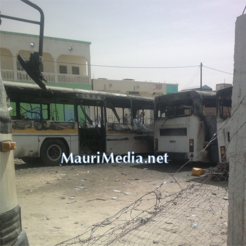 مجموعة تقوم بإحراق 3 باصات تمتلكها الشركة العمومية بنواكشوط. الصورة : موري ميديا.
